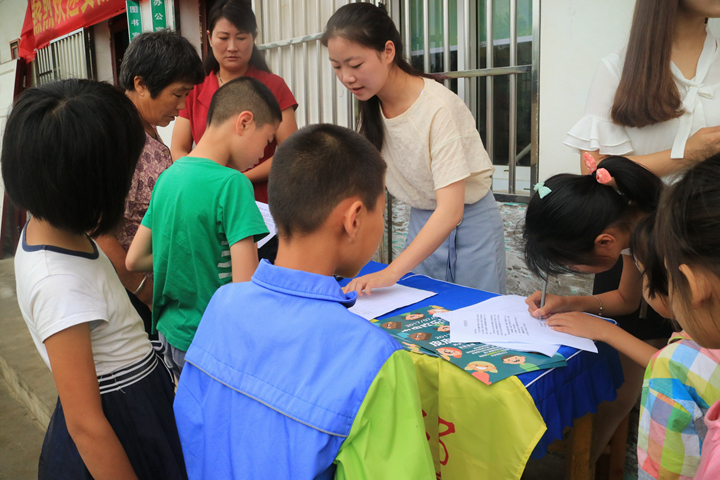 今天上午,提前到的四名队员早上很早就来到了德天小学,摆好展台,等待来领成绩单的小学生们。德天小学为了迎接我们订做了一个横幅,上面写着:“热烈欢迎365英国上市网站官网365英国上市网站官网的同学们来我校爱心支教。”我们感受到了他们对我们的欢迎。渐渐的很多家长带着孩子们来到了学校,在进行招生活动,经过教长时间的宣传介绍,学生以及家长们对此次活动有了更详细的了解,大家热情支持并积极报名,此次报名活动圆满结束!